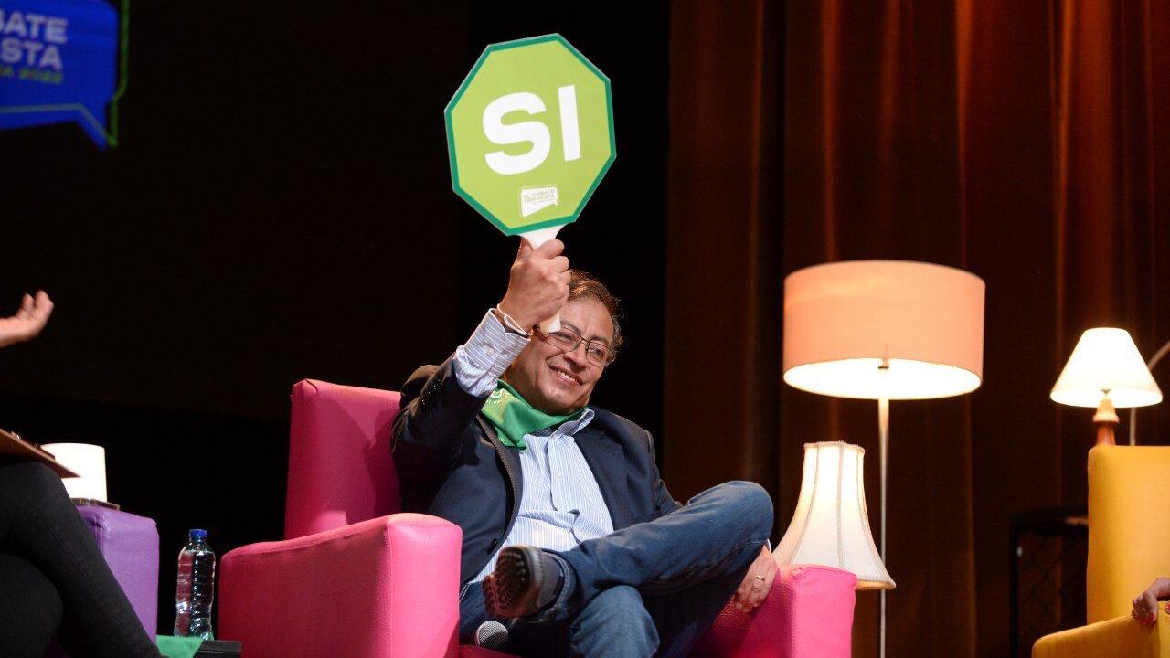 Petro llevaba en el cuello un pañuelo verde en apoyo a la despenalización del aborto dijo que “debe haber una pedagogía que enseña a la sociedad que cuando una mujer toma esa decisión libre no es criminal, que es la orden de la sentencia, que el aborto es una decisión libre de la mujer”.