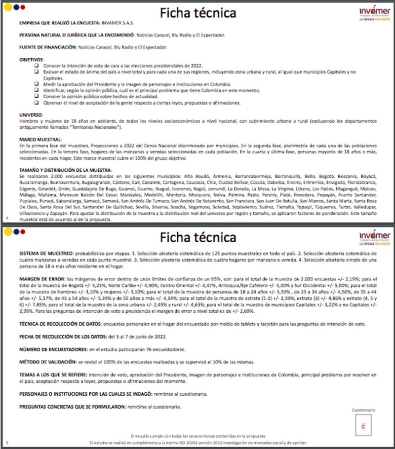 - Gustavo Petro: 47,2% (en la medición de mayo, como opción de una segunda vuelta con Hernández, tenía 50%.