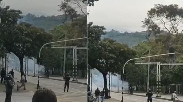 En las redes sociales se conocen videos en los que se observa que desde el interior de la Universidad de Antioquia están lanzando explosivos contra la fuerza pública.