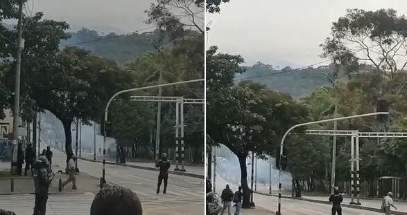 En las redes sociales se conocen videos en los que se observa que desde el interior de la Universidad de Antioquia están lanzando explosivos contra la fuerza pública.