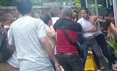 Juan Guadó, presidente interino de Venezuela, fue agredido por chavistas que irrumpieron en el restaurante en el que se encontraba con otros miembros de su equipo para golpearlos. El hecho se registró este sábado, 11 de junio, en el estado de Cojedes, Venezuela.