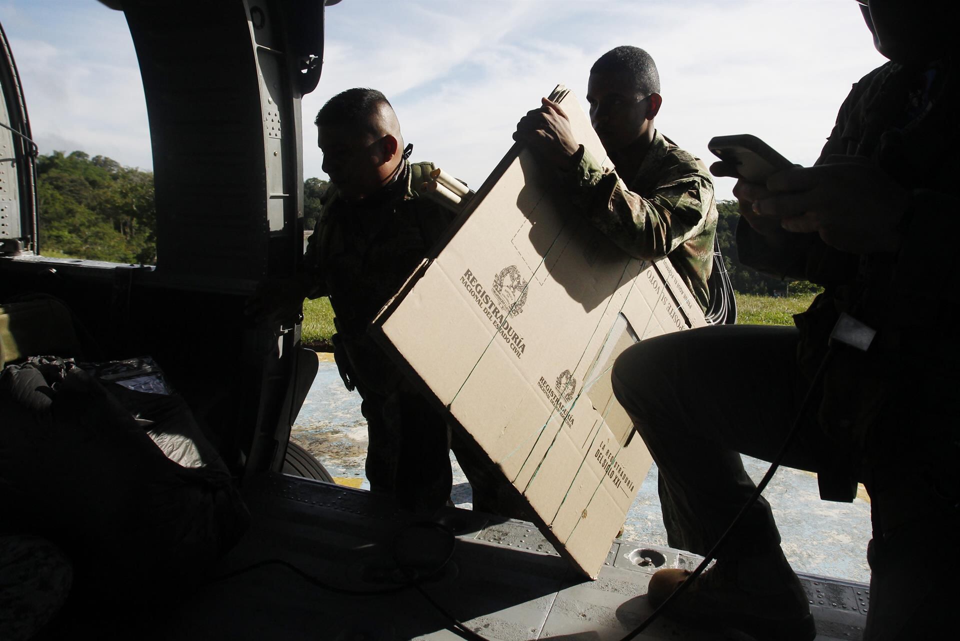 Como parte de una operación coordinada desde la base aérea de Rionegro, Antioquia, con tripulaciones integradas por cinco personas y utilizando helicópteros UH-60, el pasado jueves comenzó la entrega de material en largas jornadas que tuvieron en la geografía colombiana y el clima los principales desafíos para cumplir con los requerimientos de la Registraduría, organismo que organiza las elecciones.