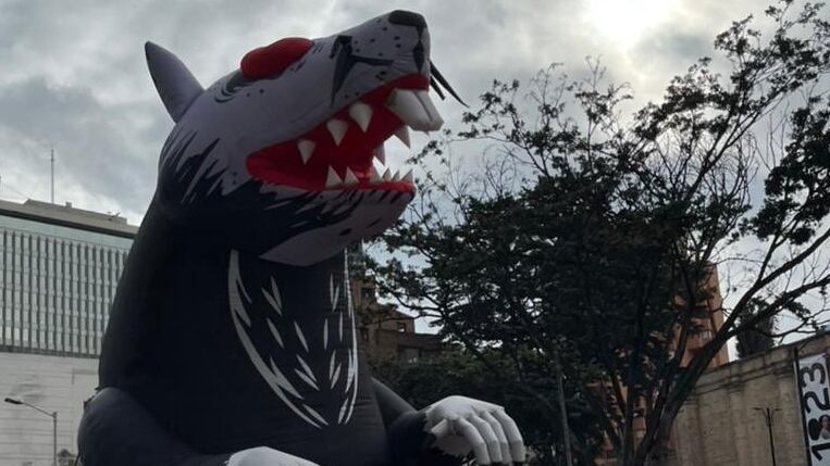 En la mañana de este viernes, una rata inflable, de casi 10 metros de altura; de color gris, negro, rojo y blanco, y que estaba parada en dos patas, apareció frente al Museo Nacional, en Bogotá.