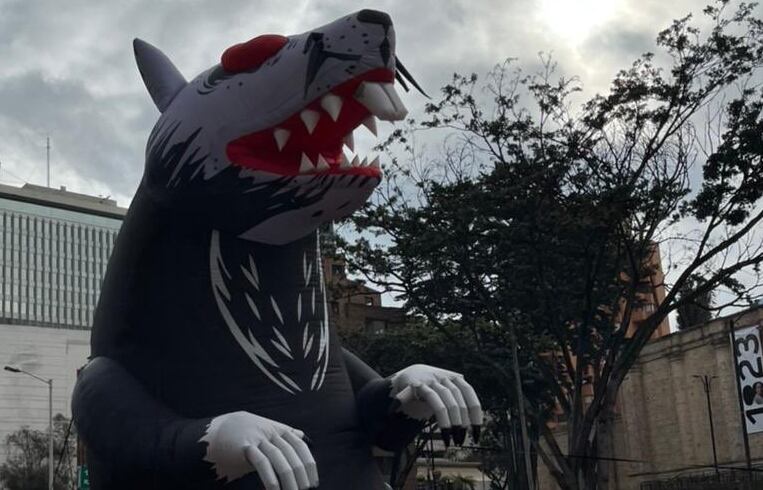 En la mañana de este viernes, una rata inflable, de casi 10 metros de altura; de color gris, negro, rojo y blanco, y que estaba parada en dos patas, apareció frente al Museo Nacional, en Bogotá.