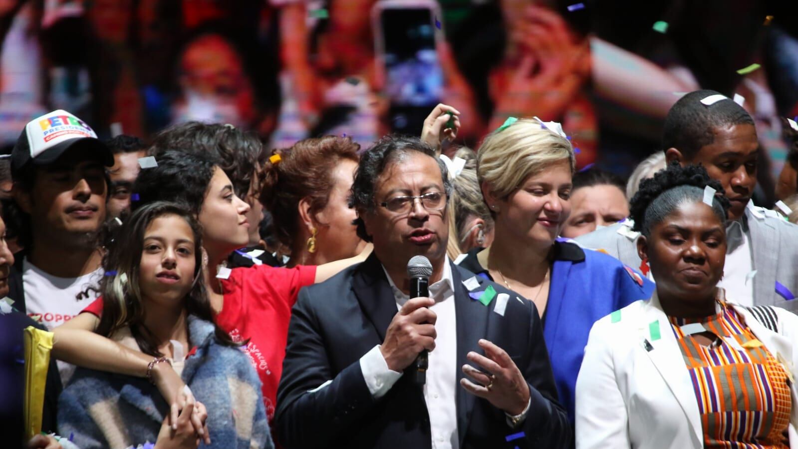 Con más de 11 millones de votos, Gustavo Petro se dirigió a los colombianos como presidente electo del país desde el Movistar Arena de Bogotá, superando la expectativa de asistencia con más de cinco mil seguidores de la campaña. El presidente electo estuvo acompañado por su equipo de trabajo, su familia y algunas personalidades como Antanas Mockus.