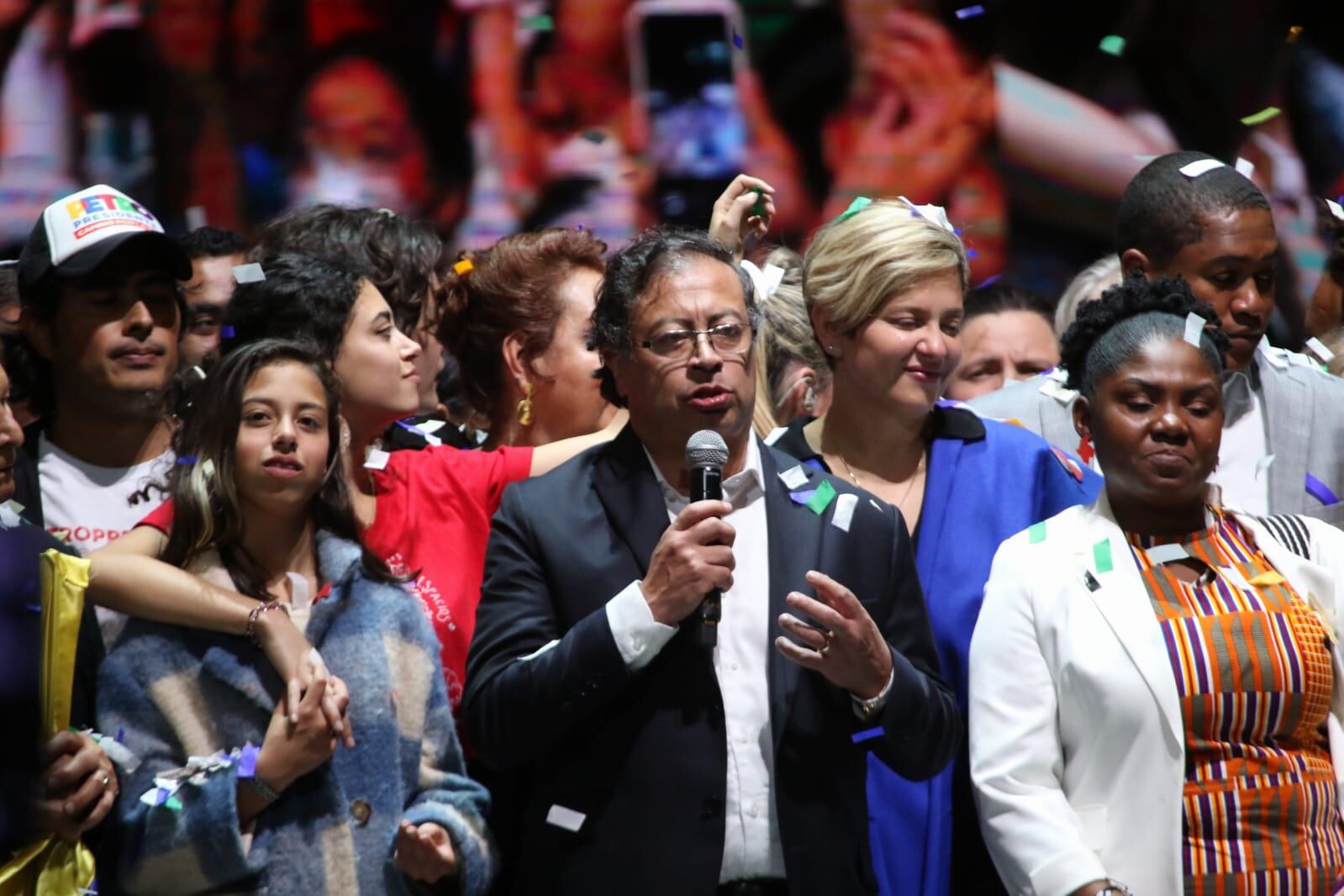 Con más de 11 millones de votos, Gustavo Petro se dirigió a los colombianos como presidente electo del país desde el Movistar Arena de Bogotá, superando la expectativa de asistencia con más de cinco mil seguidores de la campaña. El presidente electo estuvo acompañado por su equipo de trabajo, su familia y algunas personalidades como Antanas Mockus.