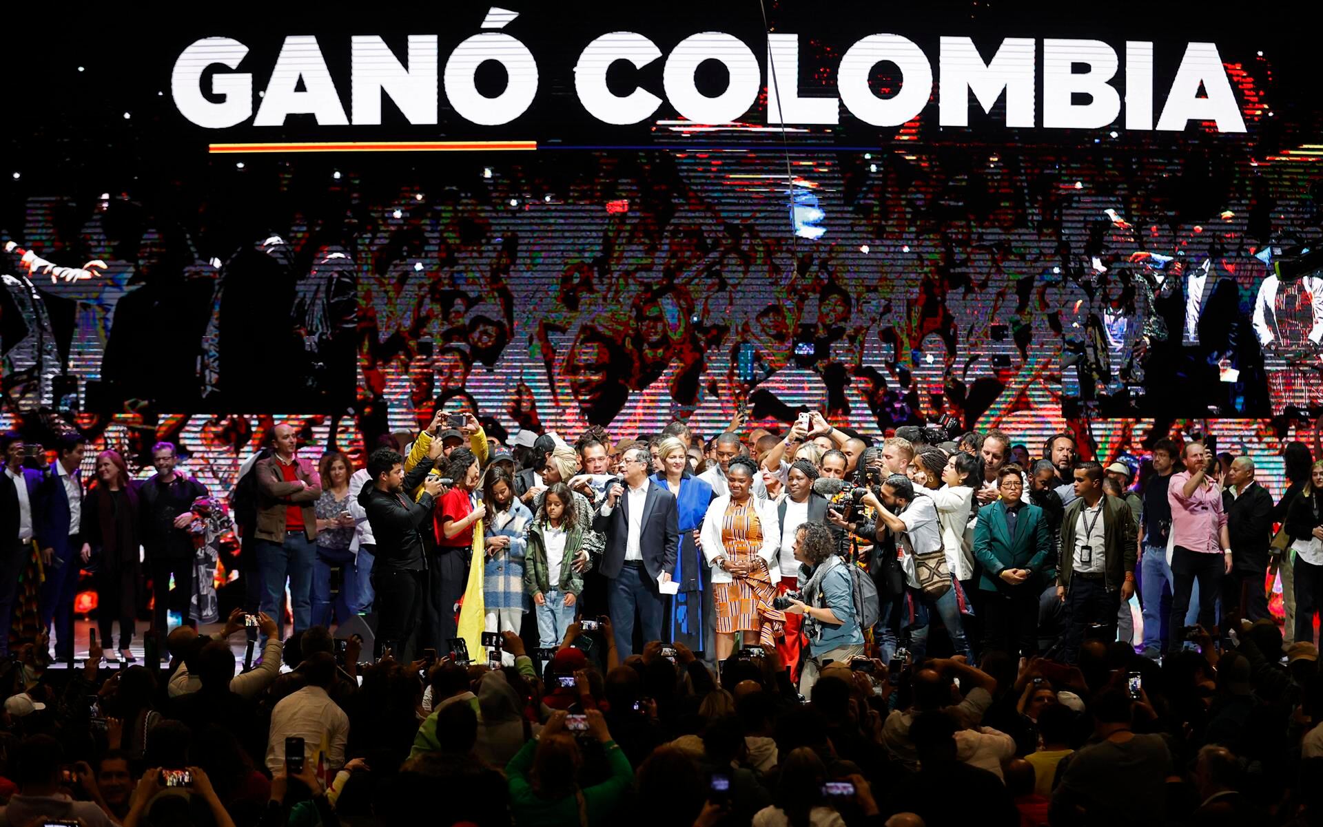Este domingo, desde el Movistar Arena de Bogotá, la Guardia Indígena sorprendió al llegar para escoltar a Gustavo Petro, quien se disponía a dar su primer discurso como presidente electo de Colombia en ese lugar. Su arribo fue aplaudido y celebrado por la multitud que esperaba al nuevo presidente y vicepresidenta.