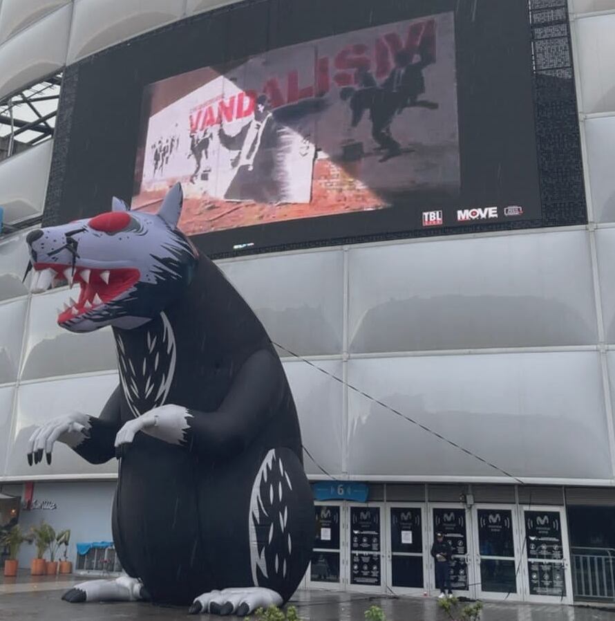 El pasado 17 de junio, una rata inflable de casi 10 metros de altura, con color gris, negro, rojo y blanco, apareció frente al Museo Nacional, en Bogotá.