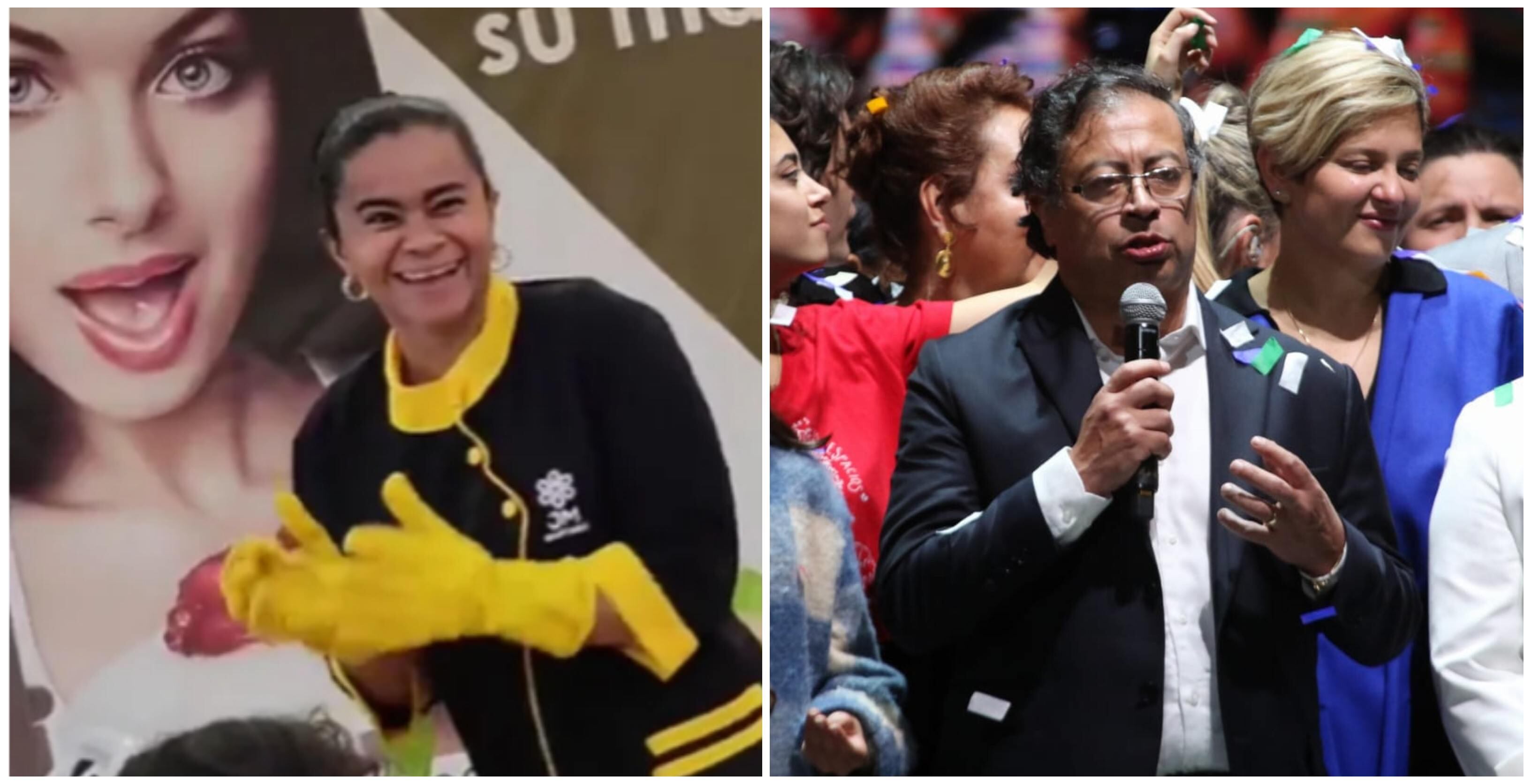 En el video que se viralizó en redes sociales se puede ver a la trabajadora de servicios generales aplaudir y sonreír frente a un televisor que transmitía los resultados electorales. Mientras trabajaba, hizo una pausa para mirar cómo iba el conteo de votos que publicaba la Registraduría.