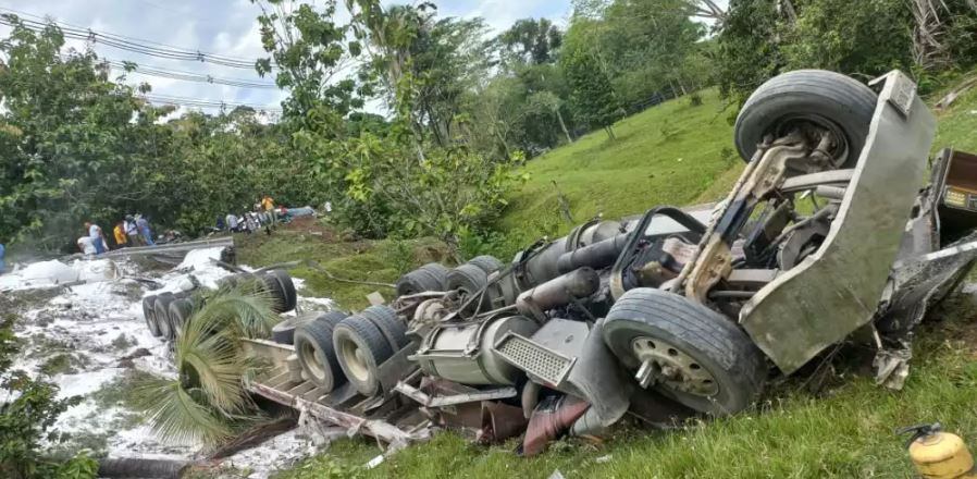 De acuerdo con el coronel Fabio Enrique Sierra Sierra, comandante de la seccional de Tránsito y Transporte de la Policía Nacional en Antioquia, una tractomula o tractocamión, que al parecer transportaba cloruro de sodio, perdió el control y se salió de la vía produciendo la muerte del conductor y tres personas más que viajaban como polizones.