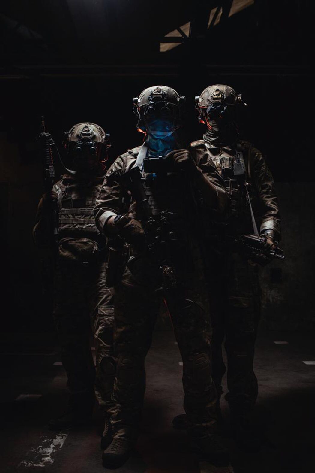 - 4GD cree que el combate cuerpo a cuerpo es una actividad física, visceral, y debe mantenerse en el mundo real, por lo que no hay auriculares. Donde entra lo virtual es en las áreas de combate que son demasiado caras, demasiado difíciles o demasiado peligrosas de llevar a cabo, como el lanzamiento de bombas, el apoyo cercano de francotiradores, etc. En nuestras instalaciones, el combate cuerpo a cuerpo (que tiene lugar en los edificios y salas) es físico, y el combate en profundidad es virtual (salas de simuladores alrededor del exterior de las instalaciones de entrenamiento que ejecutan gemelos digitales del espacio de entrenamiento “principal” real).