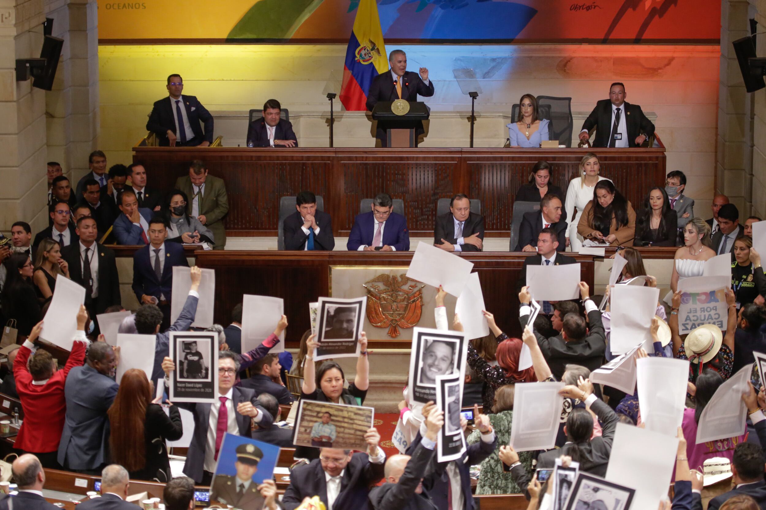 Un incómodo momento vivió este 20 de julio el presidente Iván Duque cuando le gritaron “mentiroso” en medio de su último discurso ante los senadores y representantes que legislarán en los próximos cuatro años, durante el gobierno de Gustavo Petro.