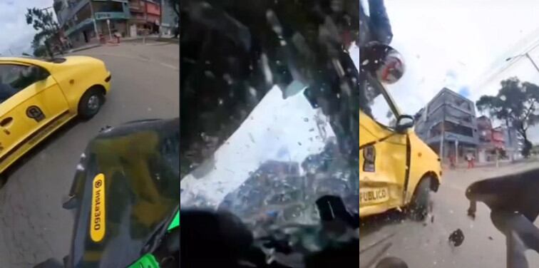 Este es el video del impacto de la moto contra el taxi en Bogotá: