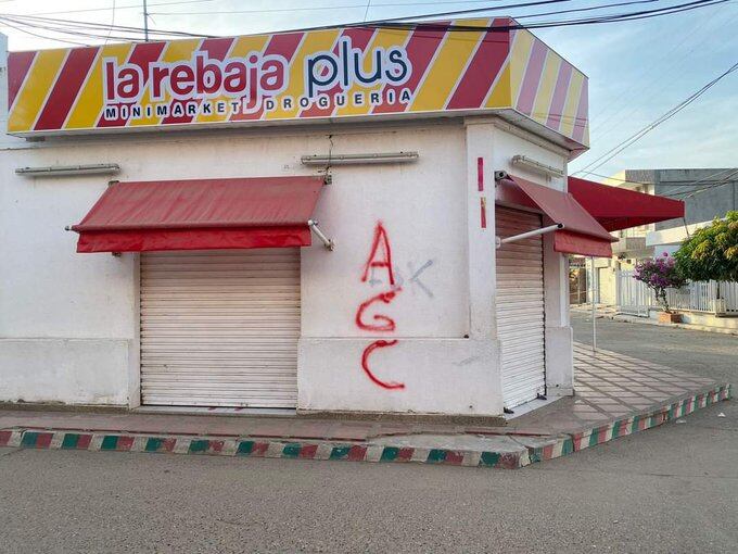 Los grafitis están escritos con letras rojas y hacen alusión a las ‘Autodefensas Gaitanistas de Colombia’ (AGC) y su mensaje advierte que “están presentes en el Magdalena”.