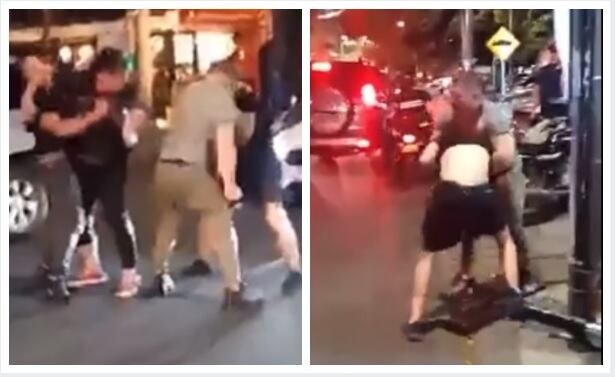 En las imágenes se observa a varios hombres pelear en una transitada vía de esta capital, la noche del sábado 30 de julio. Andrés y otro hombre se enfrentan contra otros dos hombres que no han sido identificados. En medio del enfrentamiento hasta le destrozan la camiseta que tenía puesta.