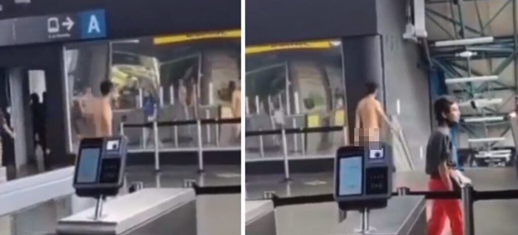 En las redes sociales circuló un video en el que se observar al hombre completamente desnudo, que sin pagar el pasaje, ingresó hasta la plataforma que conduce hacia las escaleras para poder abordar los trenes. Tanto funcionarios como usuarios quedaron perplejos ante lo que estaban viendo.