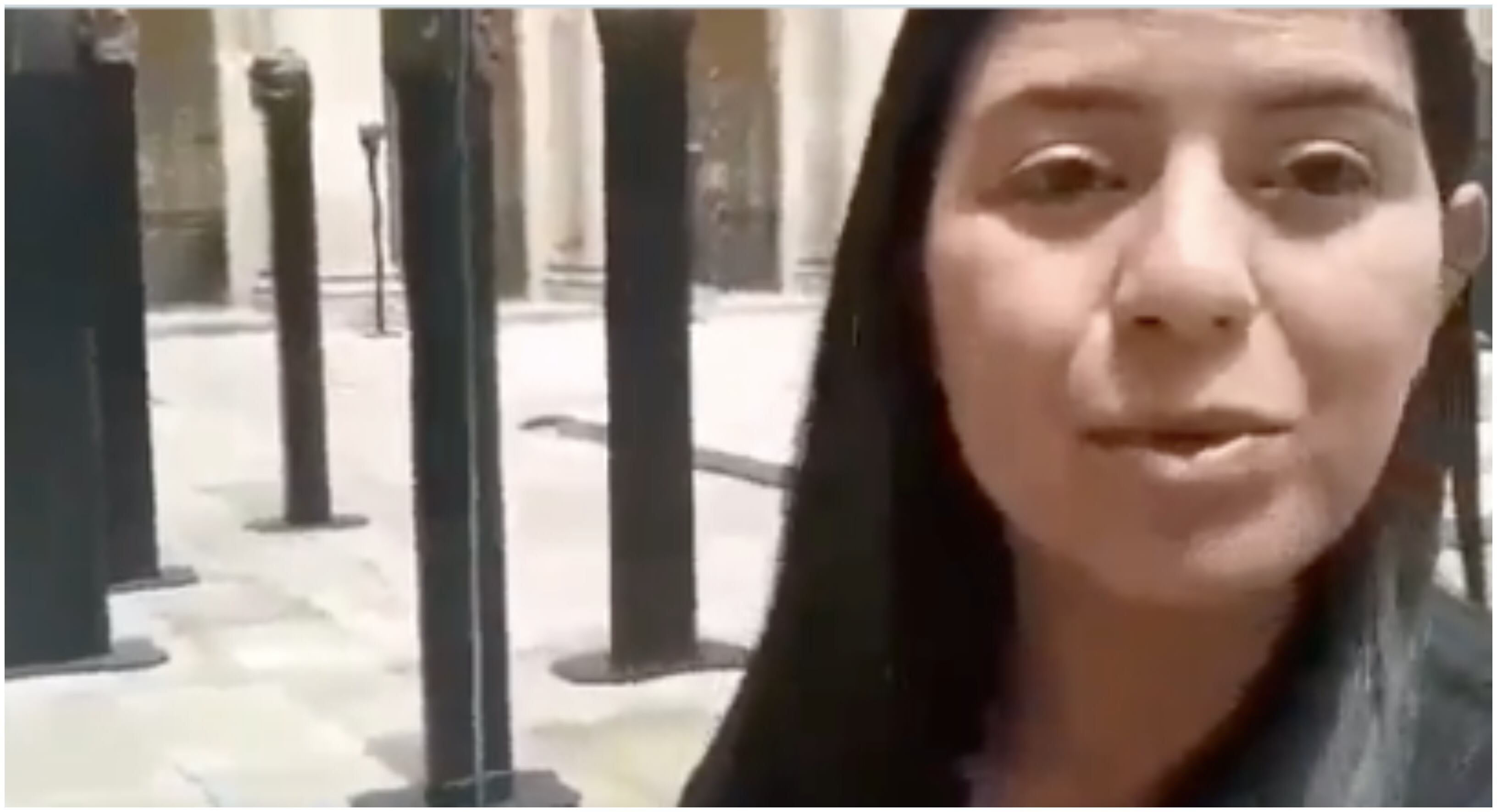 “Dios nos Bendiga. Escalofriantes objetos negros a las afueras del Congreso, Brujerías y hechicería ¿Quién los instaló?”, se le escucha decir a la mujer.