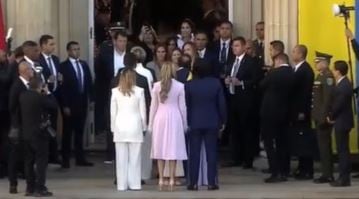 El acto, que simboliza literalmente el cambio de Gobierno, generó varias reacciones en redes sociales, dentro de las cuales resaltó la extendida de mano que no correspondió la primera dama saliente, María Juliana Ruiz al hijo de Gustavo Petro, Nicolás Alcocer Petro.