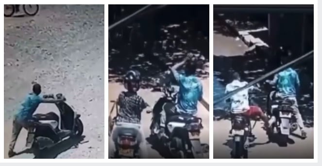 En las imágenes se puede apreciar cómo el sujeto a quien, algunos conocen como alias el ‘Yupi’ pide ayuda para que le empujen la moto y luego se le ve arrastrándola por sus propios méritos hacia el barrio 20 de Julio.