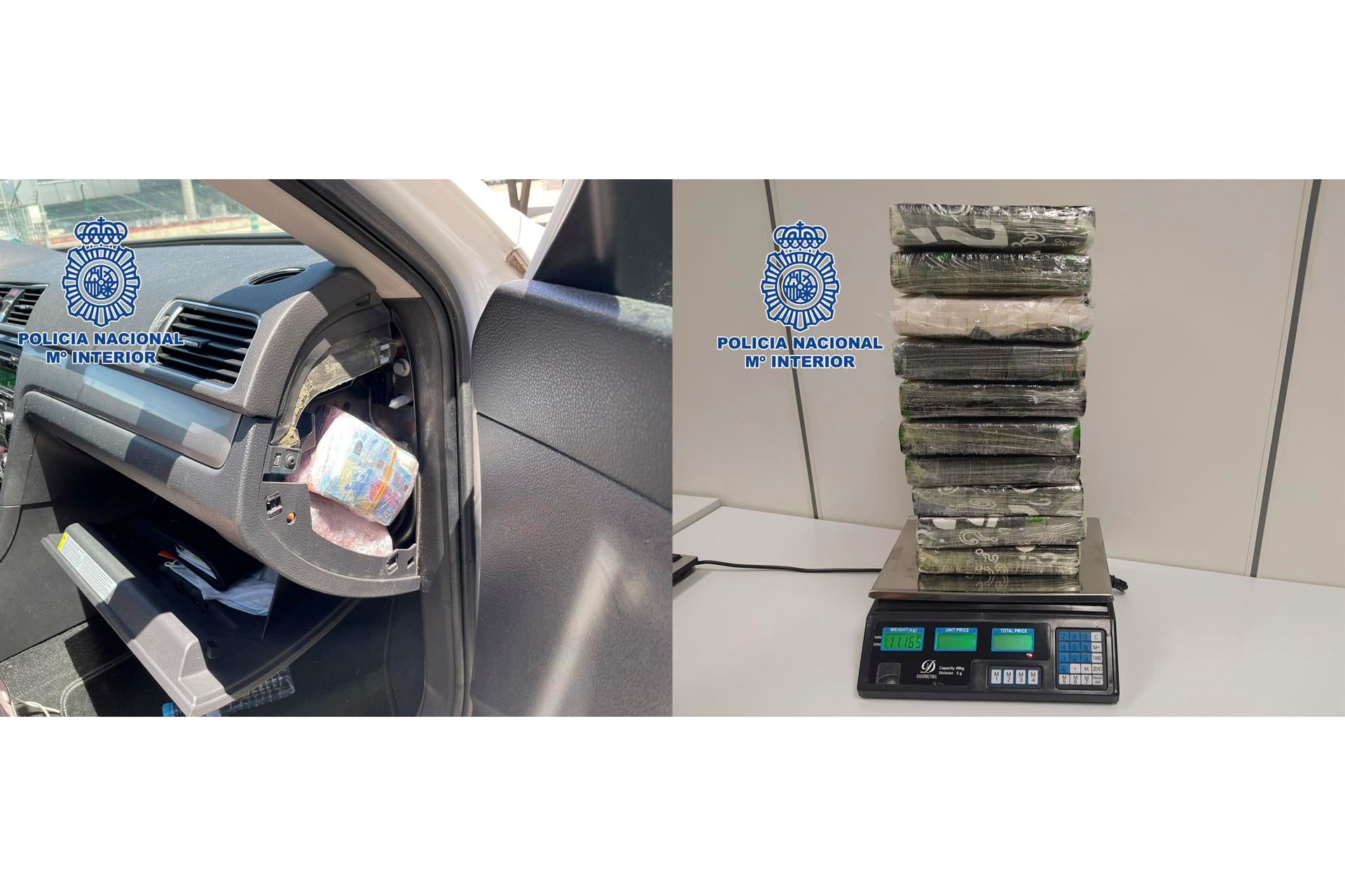 Los policías encontraron varios paquetes con cocaína en la maleta y un vehículo con un compartimento adaptado para ocultar droga, armas o dinero, además de unos 23.500 euros destinados al parecer a pagar la droga, según la Policía.
