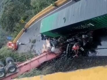 El hecho se presentó cuando un vehículo de carga pesada se desvió del carril, cayéndose hacia la vía contigua y colisionando con otro camión de carga pesada. El vehículo, al parecer se habría quedado sin frenos. Por este hecho, la policía de carreteras reporta que la vía se encuentra totalmente cerrada.