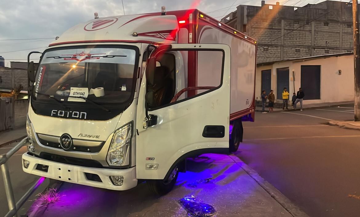 Un bombero y un agente de tránsito se ven llegando al lugar de los hechos para auxiliar al hombre, que según informaron no tuvo lesiones de gravedad luego del impactante hecho. Los testigos del hecho aseguran que el camión se habría desengranado desde una calle empinada en el municipio, y por eso rodó hacia abajo hasta llegar al punto en donde se encontraba el adulto mayor.