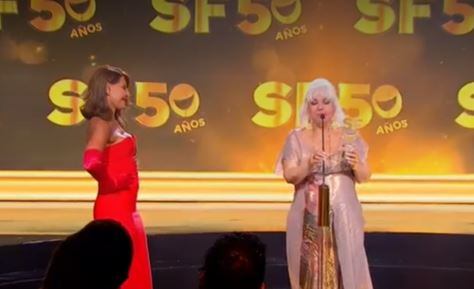 Fue la misma actriz, cantante, y presentadora, Amparo Grisales, la encargada de entregarle el reconocimiento que la conmemoraba como una de las figuras más destacadas de Sábados Felices. Grisales tuvo un momento de sensibilización en medio de sus anuncio y tras unas lágrimas, tuvo que detenerse para poder seguir hablando y brindando palabras de honor para su compañera.