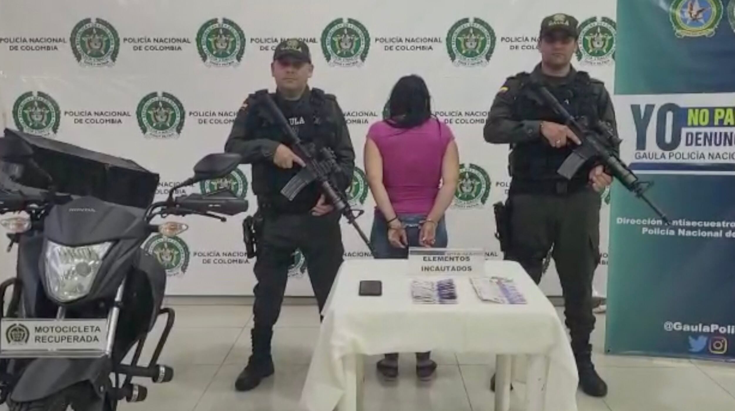 “Utiliza a su mamá para cobrar este dinero, era la exigencia de más o menos de 2.500.000 pesos para devolver la bicicleta, nuestras unidades del Gaula realizan la investigación y la capturan, la motocicleta fue recuperada en el barrio Diamante II de Bucaramanga”, dijo el coronel José Jaramillo, comandante de la Policía Metropolitana de Bucaramanga.