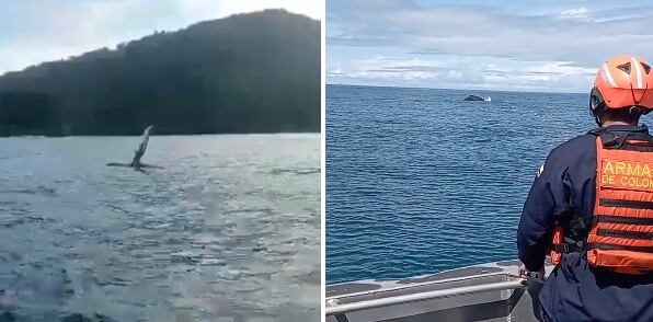 En el video que se conoció a través de la cuenta del reconocido fotoperiodista Jesús Abad Colorado, en el que se escucha decir a uno de los lancheros que una ballena jorobada está enredada.