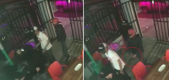 Una cámara de seguridad de uno de los establecimientos registró el momento en el que un grupo de delincuentes ingresó e intimidó con armas a los clientes que se encontraban en el lugar y los despojaron de todas sus pertenencias.