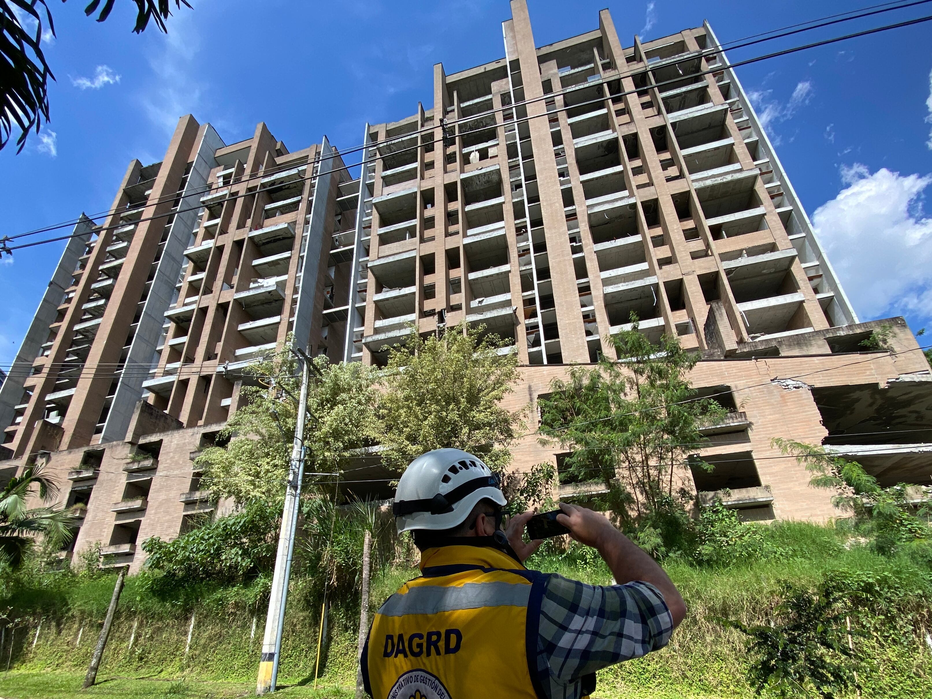 “Las últimas actualizaciones que tenemos de este seguimiento es que el consultor ya ha realizado más de 2000 registros fotográficos por medio de dron, se instaló una instrumentación topográfica y siguen unas observaciones, no solo oculares desde afuera sino también ingresando al edificio. Para esto es necesario realizar un apuntalamiento o instalar unos tacos de soporte en las losas que se han venido desprendiendo, parte de las paredes que cargaban las losas del parqueadero”, explicó Walter Pérez, subdirector de Conocimiento y Reducción del Riesgo de Desastres del Dagrd.