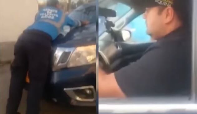 En el video, que parece sacado de una película de acción, se ve al chofer a bordo de una camioneta oscura, de alta gama, de la cual se aferra el agente, quien, al parecer, intentaba detenerlo para imponerle alguna sanción propia de su cargo, lo que habría generado la ira del hombre que conducía.