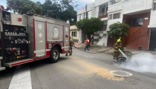 Al lugar llegaron unidades de los Bomberos de Bucaramanga para controlar las llamas de la motocicleta, que quedó hecha cenizas en plena vía pública.