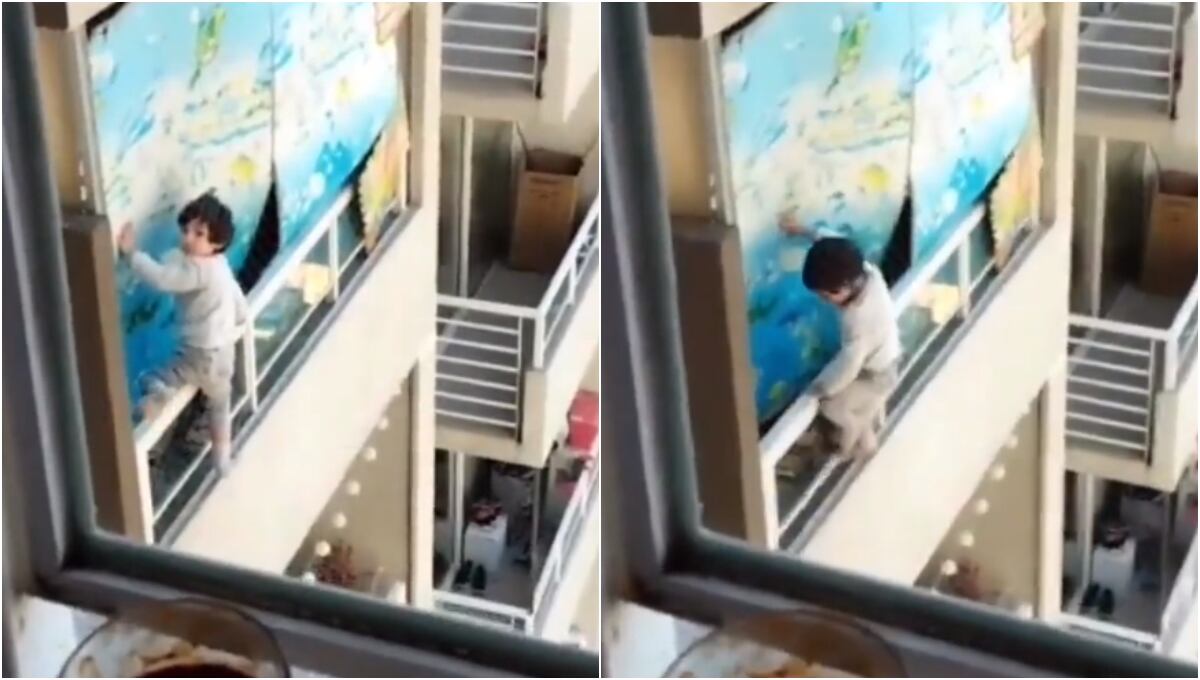 En el video se observa al pequeño jugando sin ningún temor a pesar de la altura cuando está parado por fuera de la baranda y casi a punto de caer.