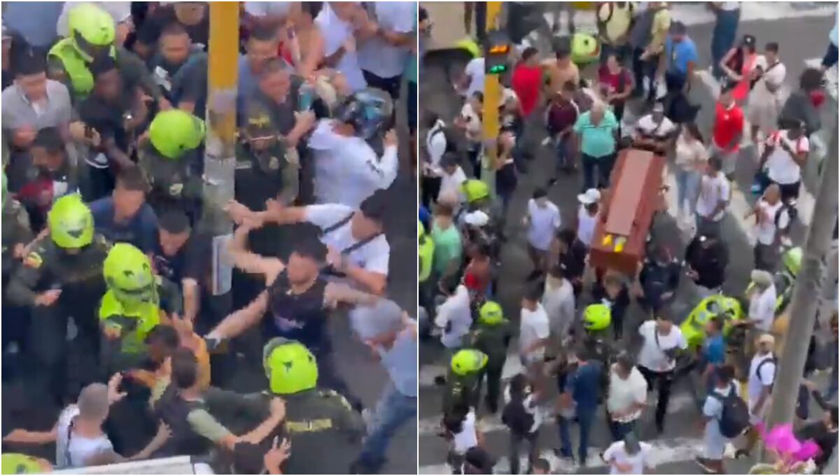 En una situación de esas que solo pasan en Colombia, a un ladrón que recibía justicia por mano propia, o más popularmente su ‘paloterapia’, le sacaron un ataúd como un claro mensaje de lo que le esperaba en el centro de Cali.