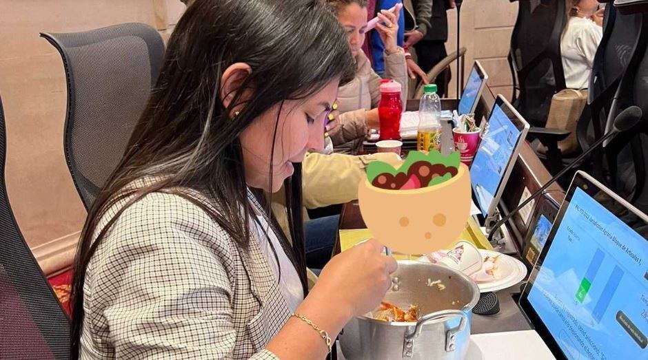 La congresista se hizo viral en varias imágenes en donde se ve comiendo sudado de pollo en la olla el pasado jueves 20 de septiembre en el Capitolio Nacional. Según argumentó, ella llevó así el almuerzo porque se debe dar ejemplo frente a los alimentos ultraprocesados, que se deben comer en mayor cantidad los naturales, disminuyendo el consumo de los mismos, que tendrían un nuevo impuesto.