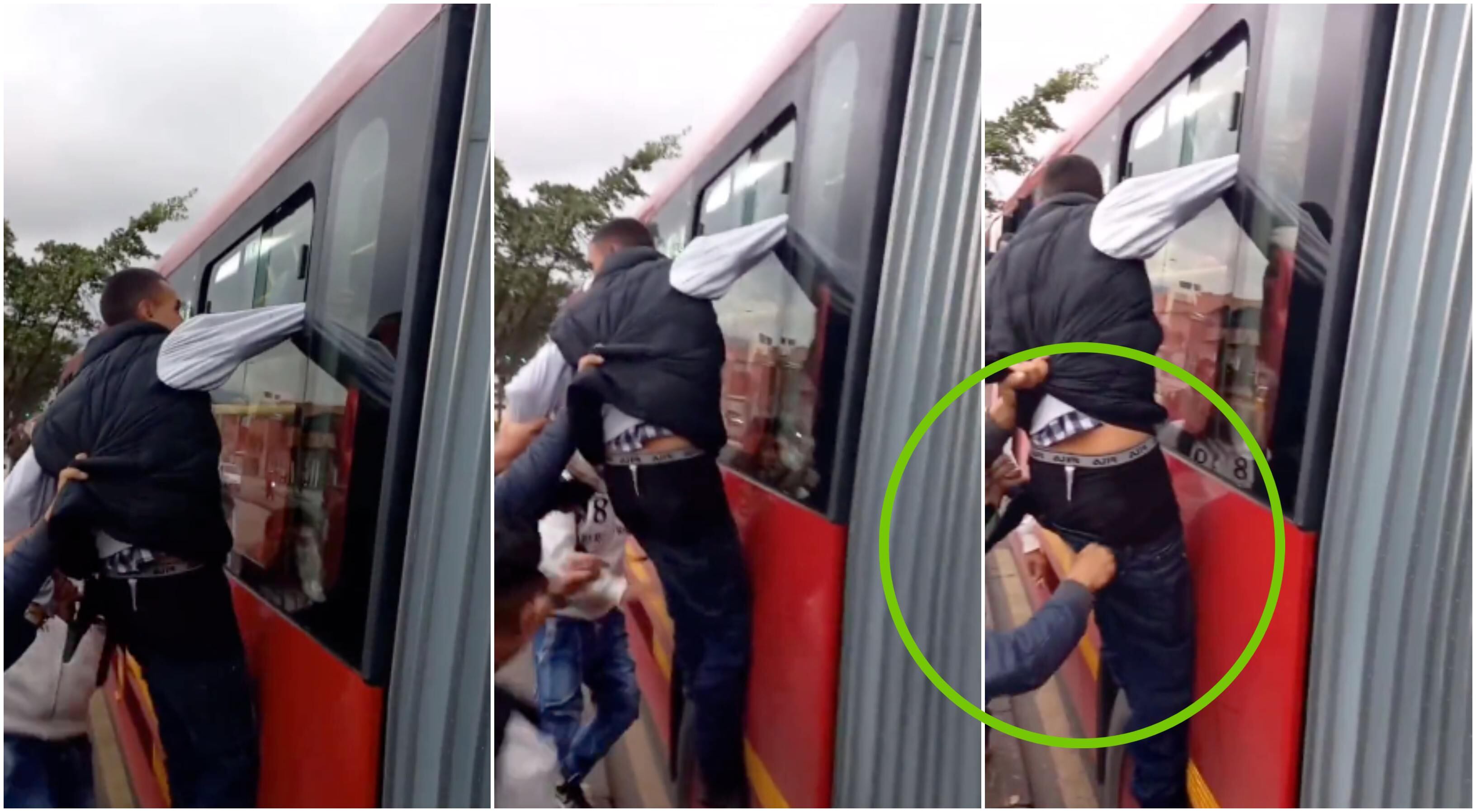 Pues en esta oportunidad, los ciudadanos tomaron justicia por mano propia y lincharon al sujeto que pretendía robar a un pasajero de un articulado desde una de las ventanas. Sí, tal y como se aprecia en el video, el hombre quedó colgado en la parte externa del bus y metió su brazo por una de las ventanillas para poder quitarle las pertenencias a su víctima.