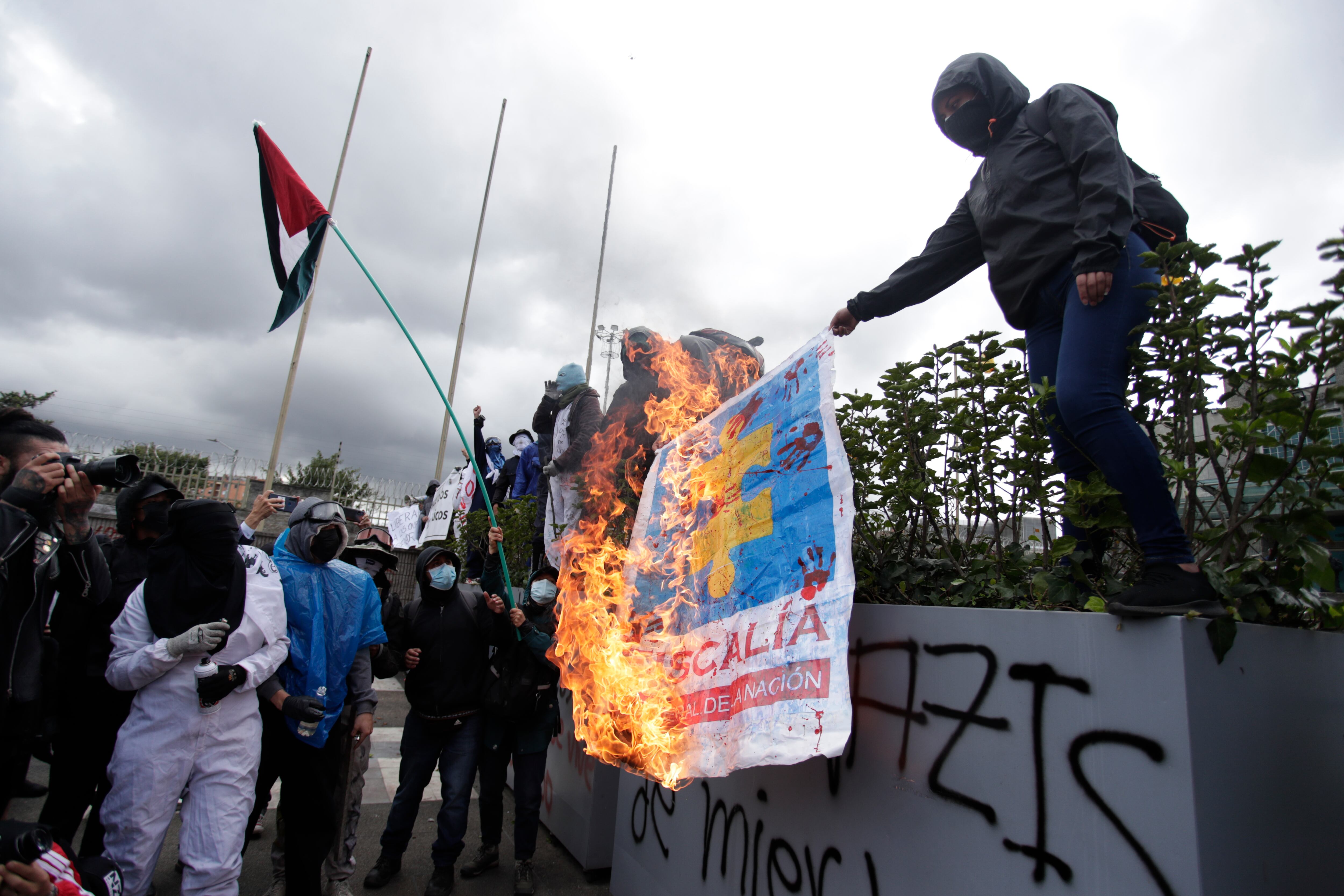 Ya en el búnker los manifestantes quemaron banderas con la imagen de la Fiscalía General, lo que generó la intervención del Esmad que logró dispersar a los manifestantes. La Primera Línea retornó al campus de la Universidad Nacional, lugar donde se desarrollaron los enfrentamientos con la fuerza pública.