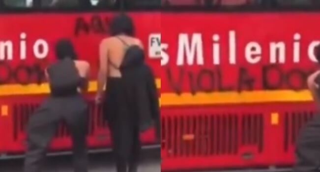 En varios videos compartidos en redes se puede observar a varias mujeres que se toman un artículado vestidas de negro y comienzan a vandalizarlo escribiendo con grafitis las palabras “violadores”. Los pasajeros tuvieron que bajarse del bus que había sido afectado por la manifestación.
