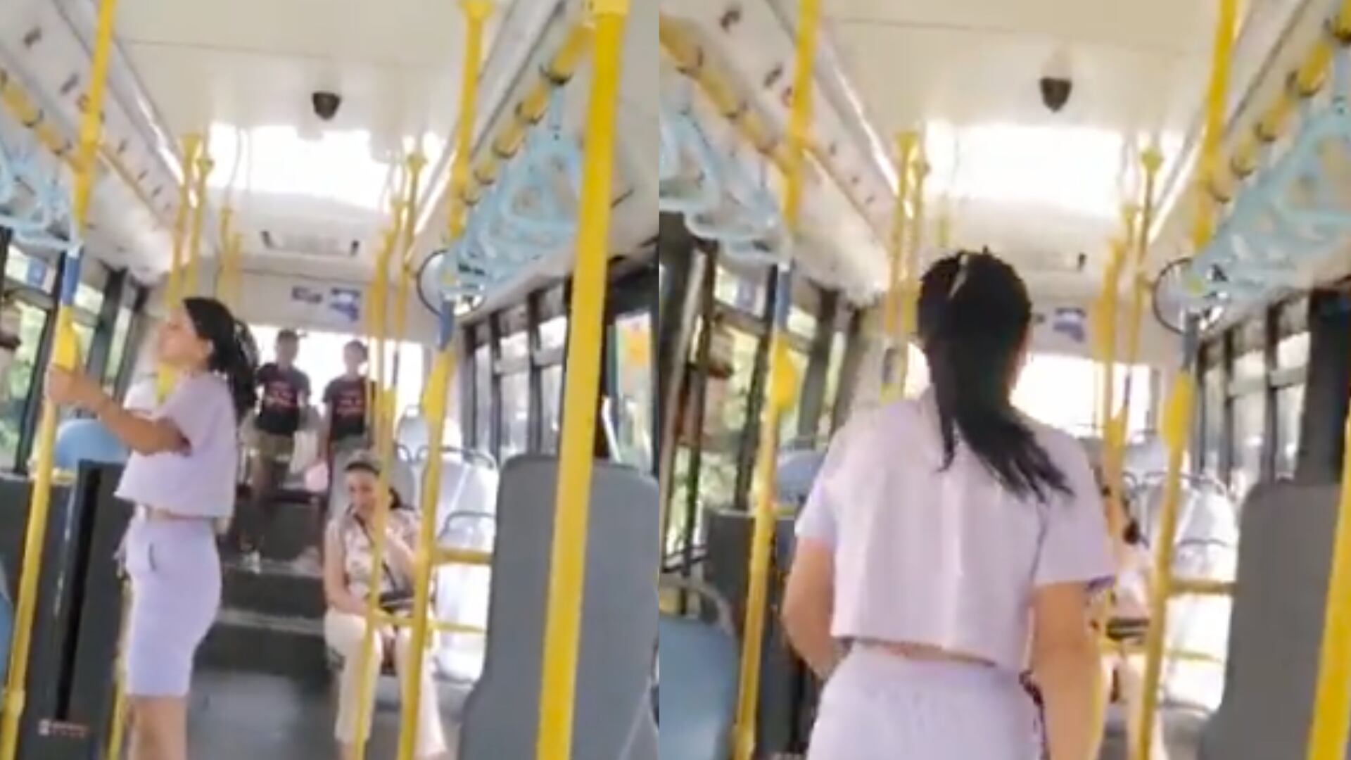 A lo que el hombre le señala una cámara de seguridad que está justo en su asiento. “Ahí está la cámara”. “Hijo de su gran ***”, lo insulta. “Que le vaya bien. La señora me pega aquí sentado. ¿No es cierto?”, le pregunta a una pasajera que responde asintiendo con la cabeza.