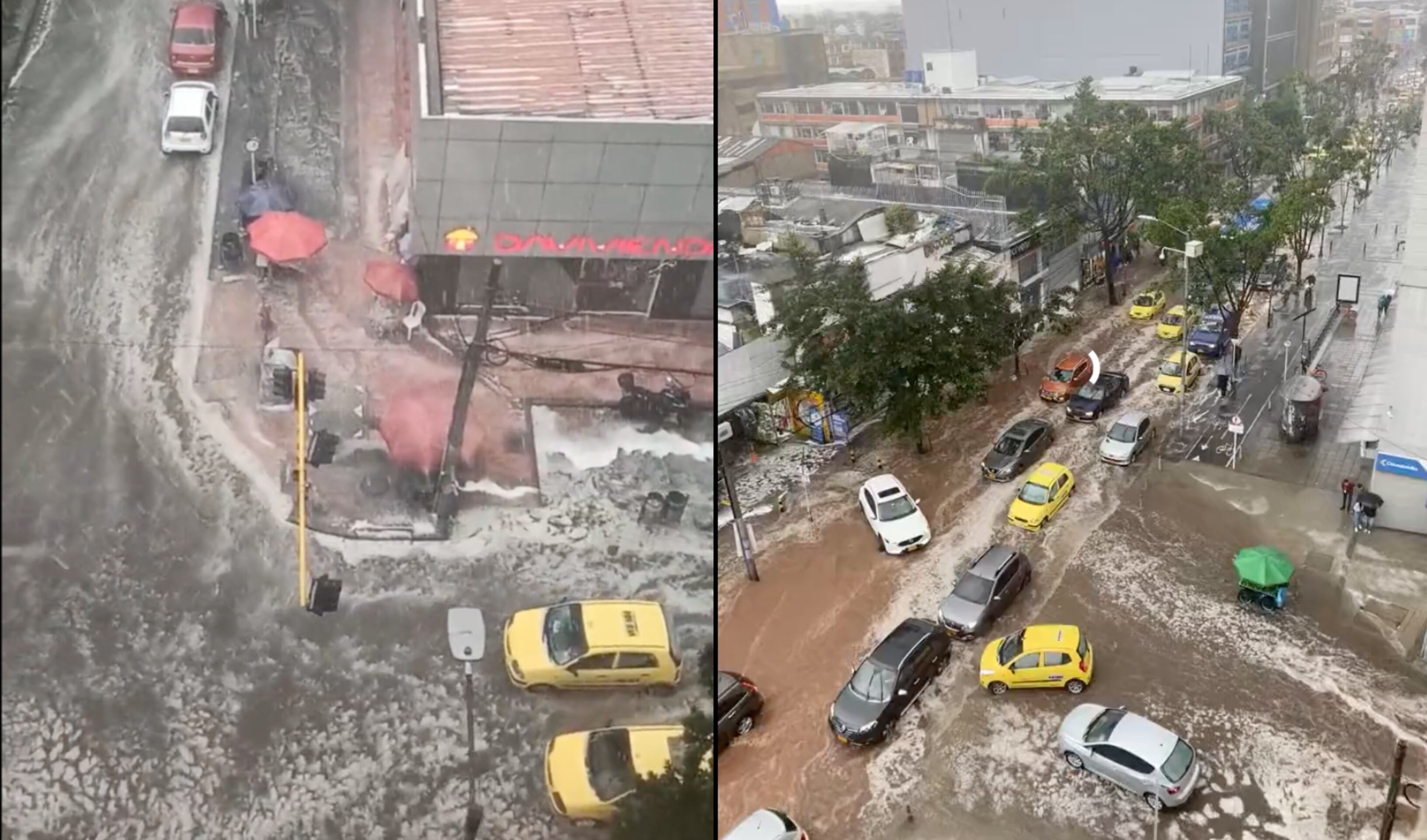 Sin duda, uno de los videos más impactantes tuvo como escenario principal la localidad de Chapinero donde como consecuencia de las lluvias el granizo, las calles se taponaron haciendo que fueran casi que poco o nada visibles. Las imágenes, dieron cuenta de varios carros casi que navegando entre el agua para poder salir de la zona.