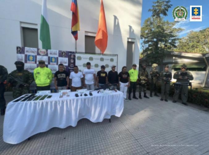 “En los procedimientos fueron incautados un revólver, un fusil, una ametralladora, cuatro cartuchos, 74 proveedores y 15 celulares. Un fiscal de la Dirección Especializada contra el Narcotráfico imputó a los detenidos los delitos de tráfico, fabricación o porte de estupefacientes; fabricación, tráfico, porte o tenencia de armas de fuego, accesorios, partes o municiones; y concierto para delinquir con fines de narcotráfico”, indicó la Fiscalía.