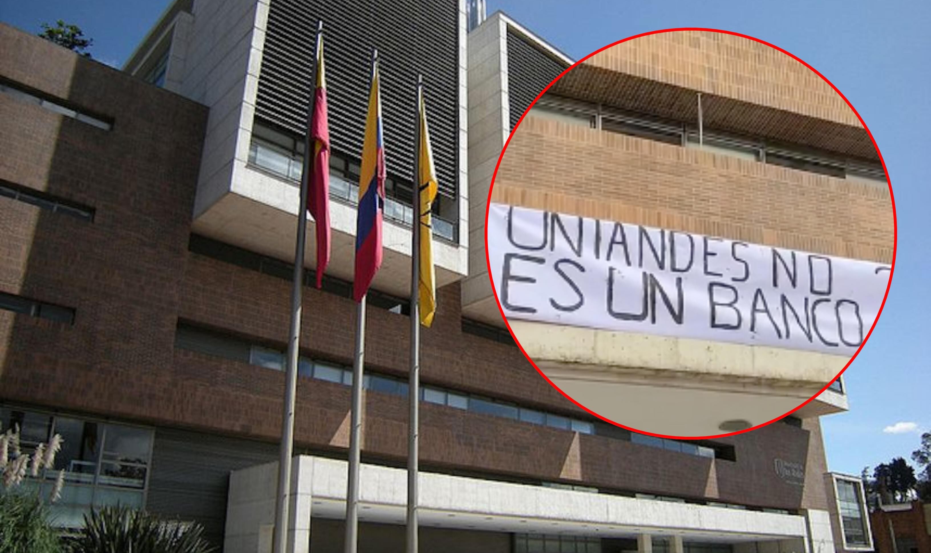 Ahí colgaron una pancarta en la que se lee: “Uniandes no es un banco”, seguido del número 21.990.000 que sería el precio promedio de las matriculas para cada semestre en el 2023. La usuaria que publicó el video escribió en esta red social: “Son elitistas en el poder”.