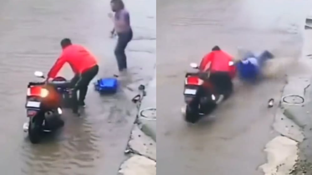 El inesperado y gigante bache provocó que la mujer que iba de parrillera saliera a volar hacia adelante la moto y aterrizó directamente en el pavimento inundado, sufriendo un gran impacto y teniendo que levantarse absolutamente empapada para reincorporarse en el vehículo. A pesar del grave hecho, en redes sociales han tomado con humor el video, pues ninguno de los motociclistas terminó herido tras el hecho, aunque sí vivieron un gran susto.