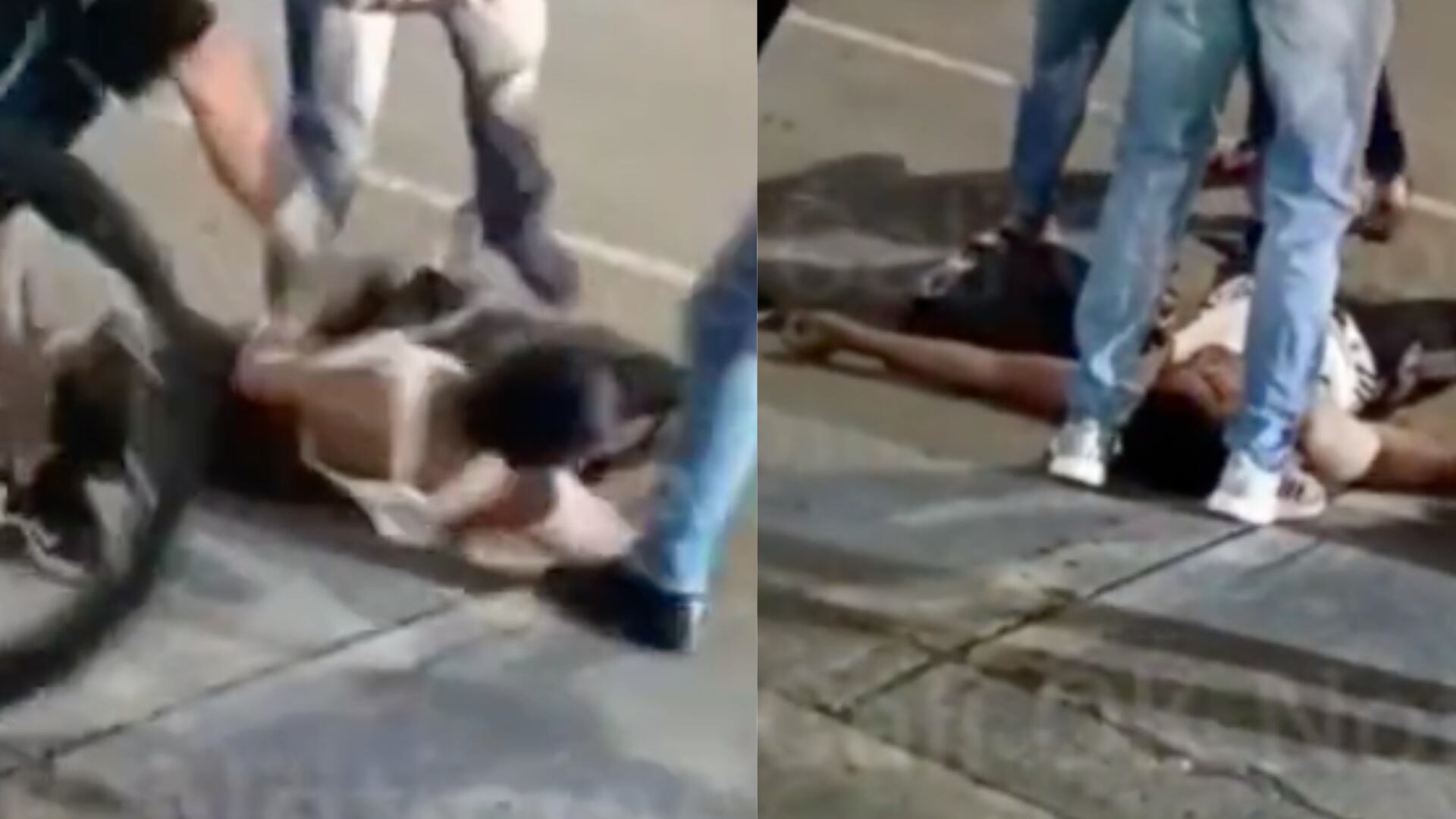 Sin embargo, uno de los sujetos alcanzó a huir, pero el otro fue retenido por la comunidad. En un video compartido a través de redes sociales, se ve como el hombre intenta levantarse, pero varias personas lo empujan fuertemente, haciendo que su cabeza se golpee contra el piso.