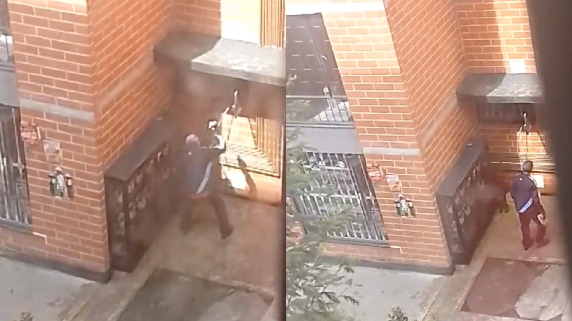 En el video, se ve como un adulto mayor, golpea en repetidas ocasiones y violentamente con un zapato, a un perrito que se encontraba en una esquina, amarrado a una de las rejas, sin posibilidad de escapar.