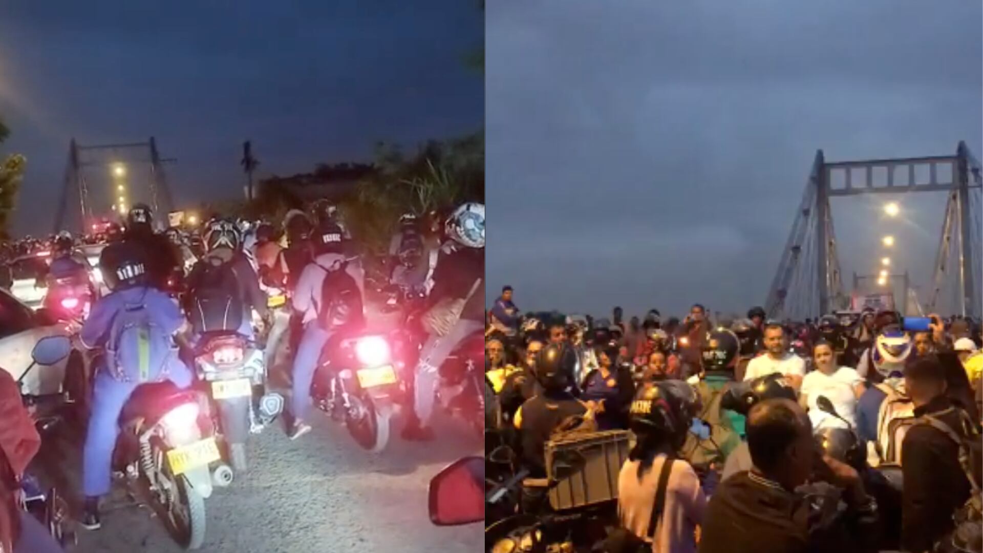 Desde muy tempranas horas en la mañana, habitantes de Cali y Candelaria, y municipios como Florida, bloquean el paso en el puente Juanchito, en la ciudad del Valle del Cauca.