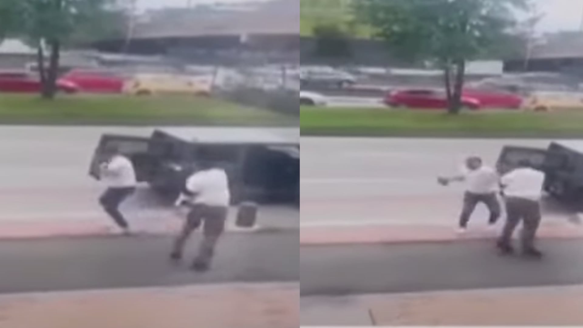 Posteriormente, se sube a la camioneta y la mujer conduce a toda velocidad, mientras los responsables huyen del lugar.