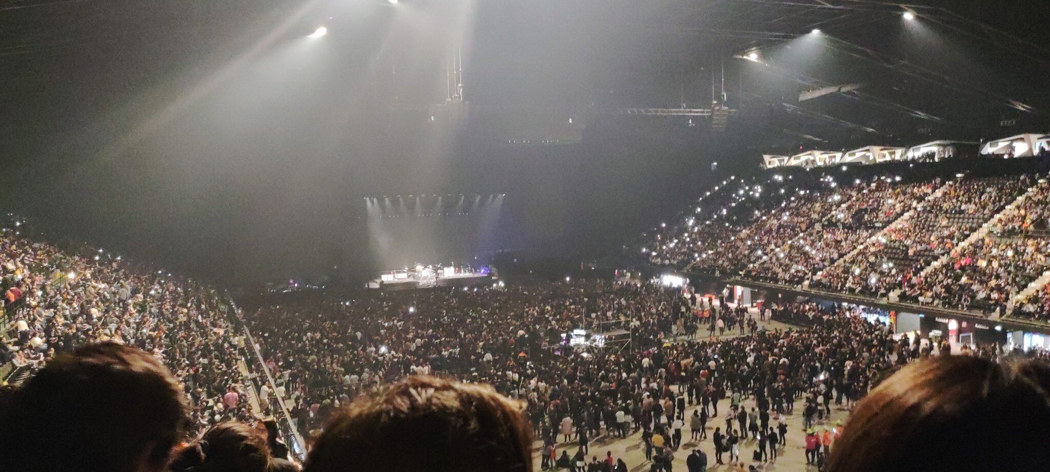 “Prendan las luces un momento por favor. Si pueden abrir espacio allí, por favor. ¿Están bien? Hay muchas personas aquí, hace calor. Lo que haremos es que todos los que estén abajo, muy despacio, comenzando desde atrás, vamos a dar dos pasos atrás”, pidió el artista en un momento de su presentación.