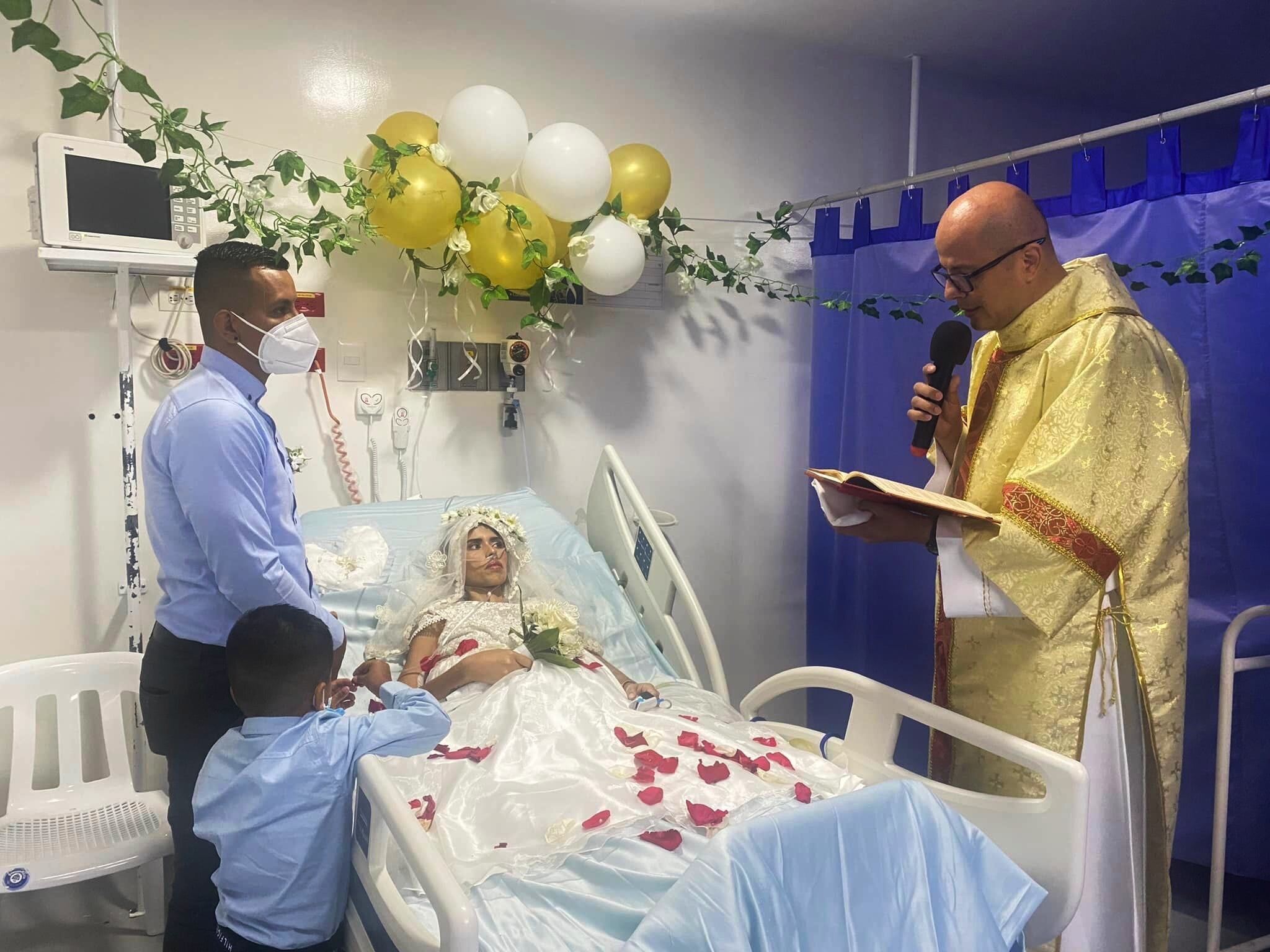 “Hoy martes 08 de noviembre del 2022, en nuestra institución cumplimos el sueño de unir en el sagrado vínculo del matrimonio bajo la bendición de Dios a una de nuestras pacientes oncológicas de 27 años. Gracias a todo el talento humano y al Todopoderoso por permitirnos trabajar día a día por un Hospital Seguro y Humanizado”, dijo el Hospital Universitario Hernando Moncaleano Perdomo hace tres semanas.